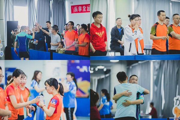 本次竞赛项目包括男子单打、女子单打和混合双打,第一阶段为分组循环赛,第二阶段为单淘汰加附加赛,在层层对阵中决出最终名次。活动现场,参赛队员们全情投入,一一展示扣球、旋转球、弧线球等“独门绝活”,一招招扣人心弦的拼杀,一个个急速如风的猛攻,现场比分胶着,赛况跌宕起伏,赛场上始终充满着激烈而友好的气氛,场下不断传来观众的欢呼声和呐喊声。